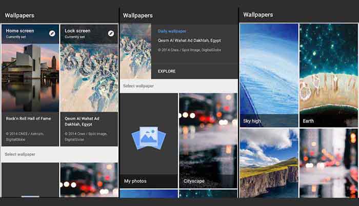 هذا تطبيق خلفية لاجهزة الاندرويد مقدم بواسطة Google LLC. يحتوي على مجموعة كبيرة من خلفيات + Google و Google Earth ومصادر أخرى. يمكنك تعيين خلفيات منفصلة للشاشة الرئيسية والقفل من التطبيق نفسه. يتم تقسيم خلفيات الشاشة إلى فئات مختلفة مثل Landscapes ، و Seascapes ، و مناظر المدينة ، والأشكال الهندسية ، وما إلى ذلك. علاوة على ذلك ، هناك ميزة "خلفية يومية" يمكنها أن تعرض لك خلفية جديدة كل يوم من فئة محددة. التطبيق مجاني للاستخدام ويمكن تحميلة من هنا.