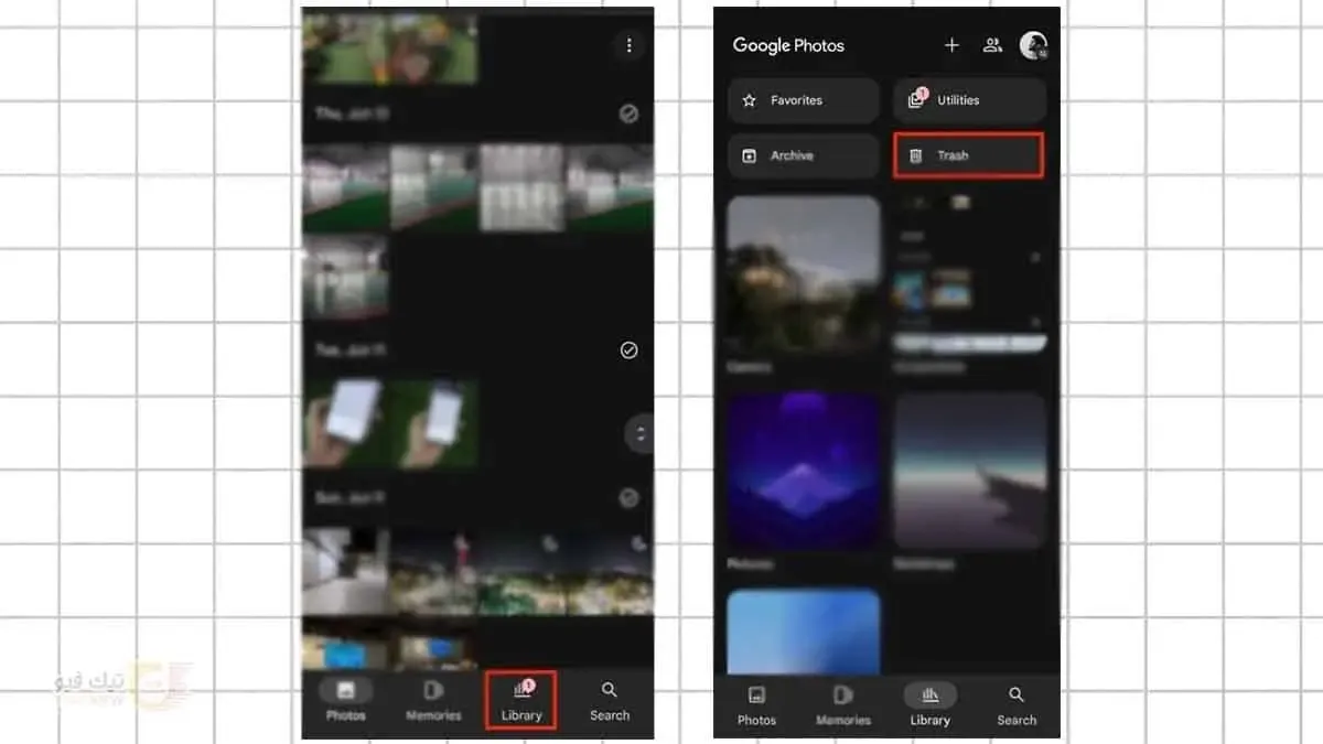 2 - تنظيف سلة المهملات في تطبيق Google Photos