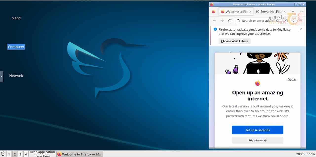 - ستظهر لك شاشة تمهيد Linux على المتصفح. ثم سيظهر سطح المكتب الخاص بنظام لينكس بعد بضع ثوانٍ. الآن، يمكنك تجربة توزيعة Linux المحدد في متصفحك.